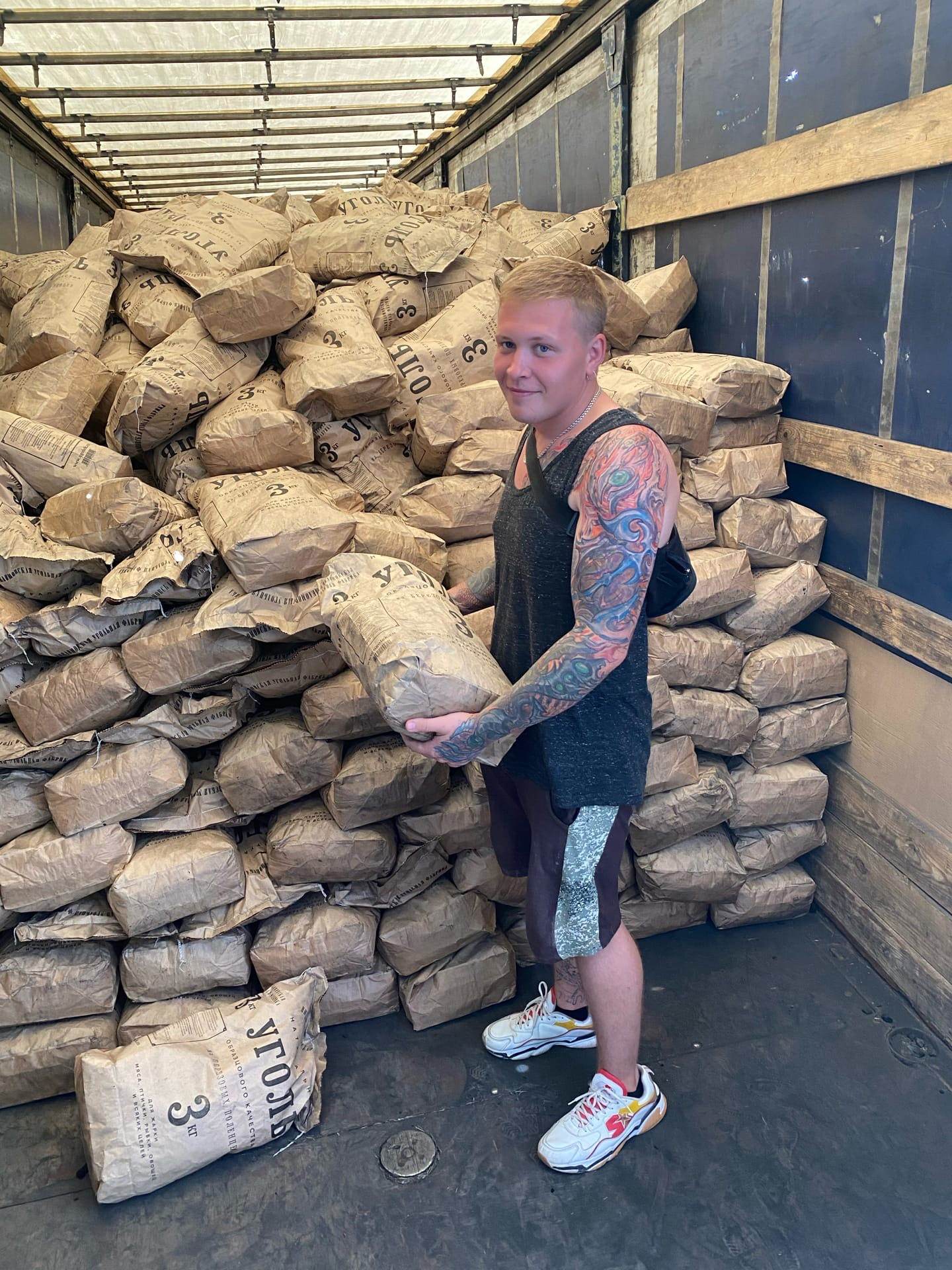 Очередной заказ на выгрузку угля в мешках. Для наших двух грузчиков хватило 1,5 часа, чтобы разгрузить данное количество угля в мешках на склад. Правда отмывались они потом долго.