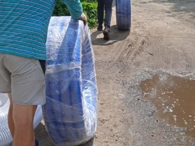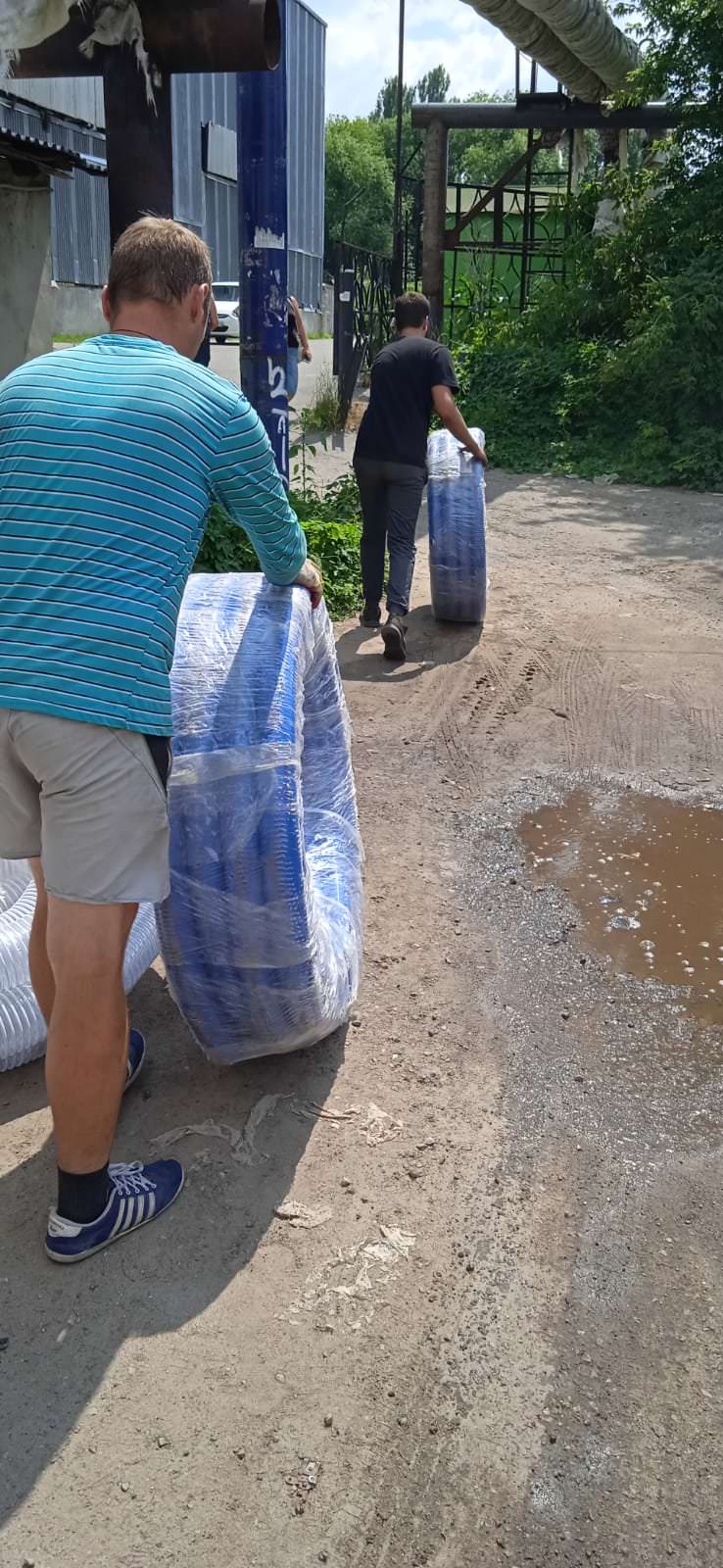 На заказ было направлено 5 человек. Разгрузка КамАЗа с прицепом заняла более 4 часов. Сложность работ заключалась забитости машины под потолок данными шлангами и вакуумными рукавами.